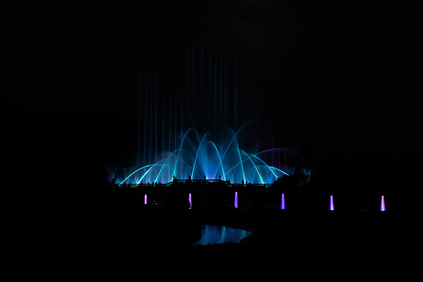 Photos of the illuminated fountain show at Longwood Gardens on 7 June 2025.